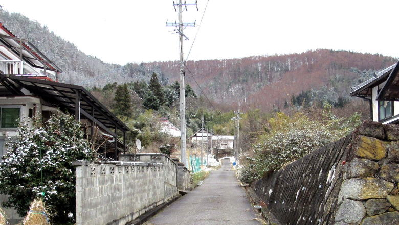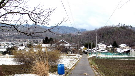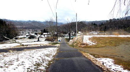 ▲家臣団屋敷街跡から青柳集落を見おろす
