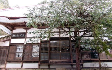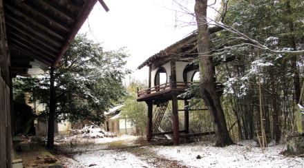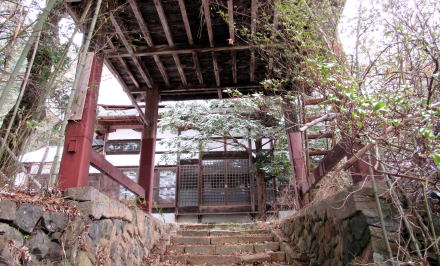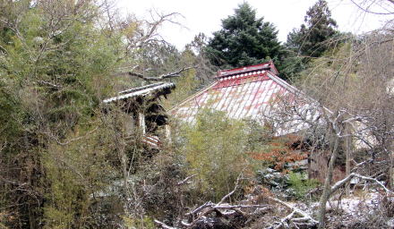 禅寺の遺構は、鐘楼門(山門)、本堂、庫裏、土蔵などですが、今ではすっかり荒廃して屋根が部分的に崩落しています。全体が倒壊するのは時間の問題です。