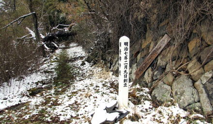 ▲標柱は、明治期に寺院が廃されて学校となったことを告げる |