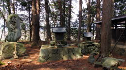 日本の神社は、境内に八百万の神を祀ってにぎやかにうる傾向がありますが、この神社もしかりです。説明板によれば、境内社として神明宮(天照皇太神)、琴平社(崇徳帝)、天神社(菅原道真)、蚕玉社、山神社が祀られています。ほかに境内には火伏せの神=秋葉社の碑もあります。