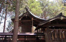 これも私の勝手な推量なのですが、この神社の元来の主祭神は建御名方命すなわち諏訪明神ではないでしょうか――中山道⇒善光寺街道の経路で諏訪社信仰と神社勧請が広まった?。というのは、拝殿と本殿を囲繞の形状が諏訪社を彷彿させるからです。