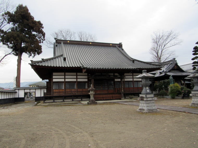 極楽寺は旧稲荷山宿の中心部からやや離れた上八日町にあります。現在の稲荷山は、街集落の南側の3分の1ほどの区域――これが上八日町――が国道403号によって分断されています。この国道は昭和期から平成期にかけて建設されたもので、つい30~40年ほど前(昭和末期)まで、上八日町と下八日町(本八日町)との間に田園地帯が割り込んでいたために、道路用地になってしまったのです。 本尊は阿弥陀如来で、脇侍は勢至菩薩と観音菩薩で、三尊像として寺宝となっているそうです。
