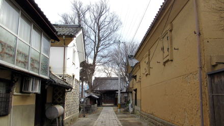 ![]() ▲土蔵が軒を連ねる上八日町の参道小路の奥に山門がある ![]() ▲巨大な薬医門が参詣者を出迎える ![]() ▲鐘楼の前で振り返るとケヤキの老巨木が上空を扼している ![]() ▲均整がとれた本堂と庫裏、常夜灯が整然と並ぶ ![]() ▲独創的な造りの鐘楼の原型は戦国時代のものらしい |