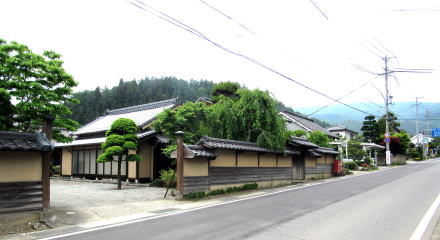![]() ▲佐野川を東に越えると桑原西町で、古い城下町があったらしい ![]() ▲旧本陣柳沢家と街道向かいにある松代藩士関家の屋敷跡 ![]() ▲主屋に向かうための大きな長屋門でこれが正門か ![]() ▲長屋門の奥に控える主屋は昭和期に養蚕用に修築したか 桑原に有力な藩士の屋敷が構えられているのは特異なことだ。関長昭が若い頃から学問を修めたので、若くして隠居してここに隠宅を構えたのか。それとも、麻績と稲荷山2つの天領に挟まれたこの地が松代藩にとって政治的・経済的に重要な伝馬拠点だったために、関家屋敷を置いたのか。 大坂の米取引所・蔵屋敷に米を輸送するための伝馬基地だった本陣とともに蔵が利用されたらしい。幕末には情報収取や各藩との連絡のために藩の密命を帯びた使者や藩士を京洛に送り込むための拠点宿として利用されたらしい。 ![]() ▲豪農の屋敷だったと見られる敷地が街道沿いに並んでいる ![]() ▲総二階の広壮な建物は養蚕向けの造りだ ![]() ▲こちらも広大な屋敷地を土塀が囲んでいる ![]() ▲ここも村役人の屋敷だったか、街道に面した間口が広い |