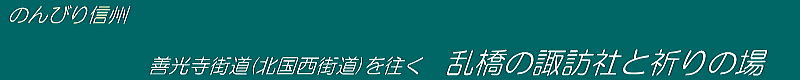 乱橋諏訪神社は、善光寺道沿いの間の宿の街並みや村落から300メートル北西に離れた場所に置かれています。集落からは少し距離があるのです。農業用水となっている別所川の畔の平坦な低地に位置しています。 諏訪大社は、諸町時代後期から江戸時代にかけて、用水路建設や水田開拓のために近隣集落住民を連帯・結束させるために祀られた場合が多いので、別所川河畔にあるのは独特の意味合いがありそうです。 ◆諏訪神社、阿弥陀堂など・・・祈りの場◆ |