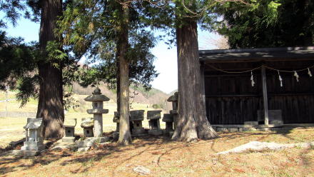 ![]() ▲別所川の谷底の平坦地に神社がある ![]() ▲拝殿の背後に丘が迫り、脇にはケヤキの大木が立つ ![]() ▲拝殿は昭和末期に修築されたか ![]() ▲境内の西端に神楽殿がある ![]() ▲明治末期に合祀されたらしい社石祠が並ぶ ![]() ▲旧街道の北の丘の上にある大門の集落 ![]() ▲県道30号脇の尾根裾にある阿弥陀堂 ![]() ▲お堂の前に集められた石仏群 |