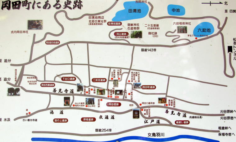 ![]() 旧善光寺街道沿い岡田宿史跡緑園にある絵地図 |
