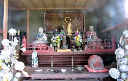 ![]() 町内から寄付を募って、大願寺跡地に1968年に建てられた史跡記念小堂 |