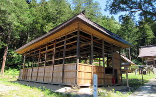 さて、境内の最上壇には、拝殿の奥に本殿が建てられています。この本殿は信州でも最大級の規模で、しかも伝統的な様式にもとづいて建築されていて、国の重要文化財となっています。