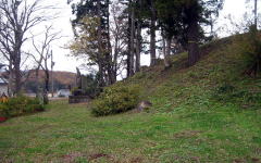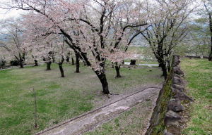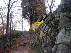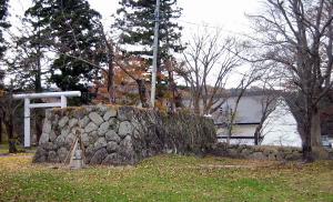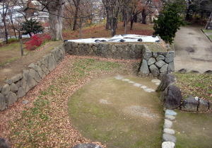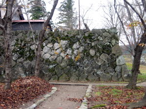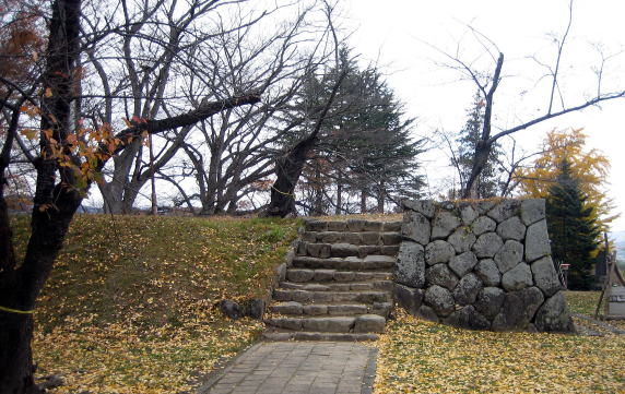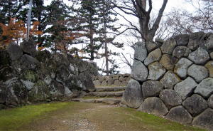 神社の脇には「天守台」が残されていますが、規模が小さいので、飯山城破却のさいに石垣は壊され、石塁に組み換えられたのかもしれません。それとも、もとから――物見櫓程度で――天守はなかったのかもしれません。