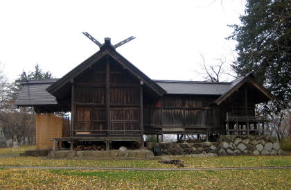 本丸には葵神社が置かれています。その社殿は神明社式――大和王権系――で、幕末まであった城郭内の神社とは伊勢社を別として系統を異にしています。現在の社殿が明治初期の造りを踏襲しているとすれば、戊辰戦争時に起きた火災で飯山は灰燼に帰してしまい、明治政治政府側の権威に屈服した事態の象徴ともいえます。