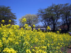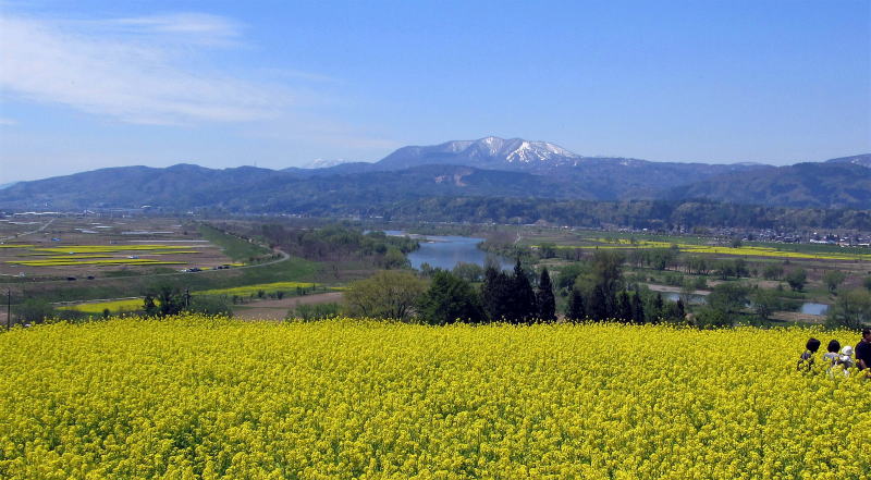 飯山市街の東方、千曲川河畔の丘には菜の花公園があります。