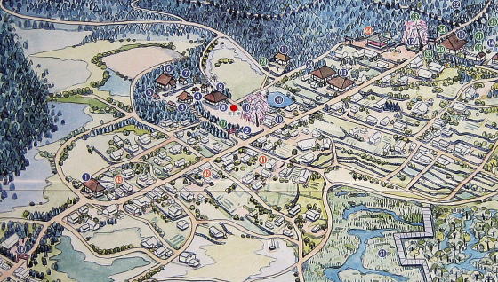 ▲小菅の里の古い案内板絵地図 ⇒拡大絵地図を見る