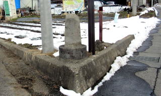 ![]() 大倉橋場の北西端の街道分岐点の石道標;「右ハ飯山道、左ハ牟礼 梅ノ木」と刻まれている |