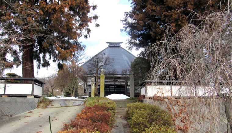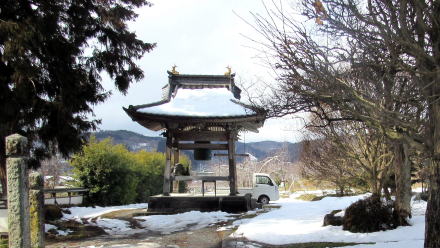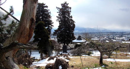 ![]() ▲蟹沢坂下の集落から龍澤寺に向かう石畳参道の入り口 ![]() ▲境内は丘を背後にしてあたかも中世の領主館のような趣 ![]() ▲明治中期に再建された本堂。雪深い里に合わせた寄棟の屋根。 ![]() ▲明治後期に再建された鐘楼 ![]() ▲リンゴ園が連なる丘の南向き斜面に位置する境内 ![]() ▲本堂脇から境内庭園と庫裏を眺める ![]() ▲背後の丘の上から本堂を眺める。屋根の個賠は急峻だ。 ![]() ▲境内脇の果樹園から千曲川隆起を見渡す |