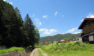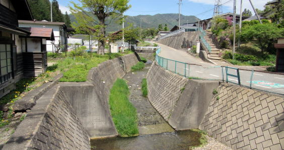 旧街道を北上する前に、辻地蔵堂から道を西に直進して、駒沢川沿いの集落の風景を見て回りましょう。というのも、そこには往時の南小野村の姿をとどめる古民家がいくつも残されているからです。