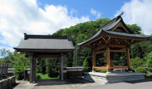 石段の上に山門。入って左に鐘楼がある▲