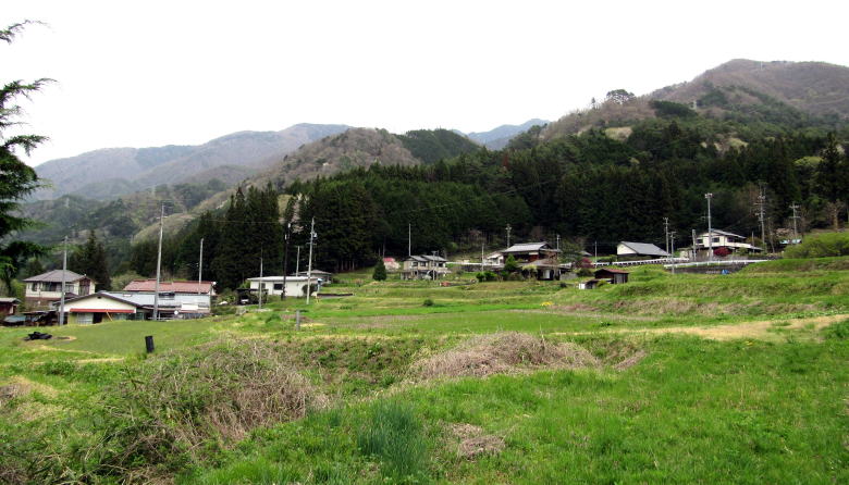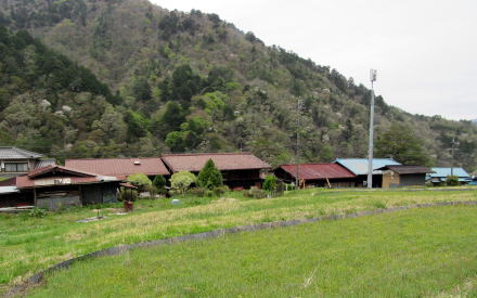 ![]() 倉本の熊野権現社の近くから北東方向の景観。正面の尾根は木曾駒ケ岳から延びる稜線の末端。 |