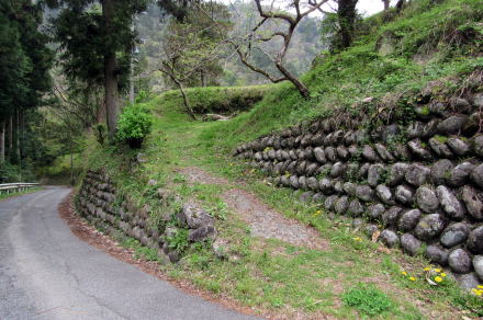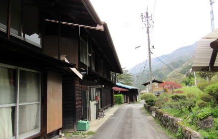 今回の旅では、万場(桃山地区)から大沢川を越えて倉本まで旧中山道の遺構を辿ります。往古から大沢川はしばしば氾濫や土石流が発生したので、河畔の旧中山道の遺構は失われています。 ◆急斜面にある古い山岳修験の里を歩く◆ |