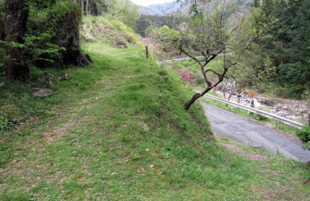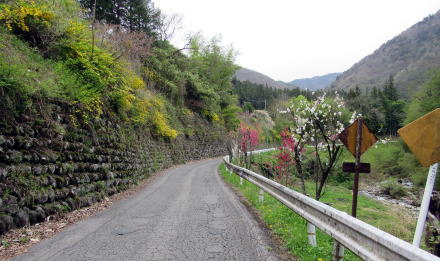 ![]() ▲糸瀬山の巨大な岩塊が木曾川の岸辺に迫っている ![]() ▲国道19号は狭い谷間の底近くを通っている ![]() ▲中山道はこの急斜面の段丘(糸瀬山の尾根先端)を越えていった ![]() ▲河畔を往く舗装林道は谷底近くを進んで河岸段丘崖を回り込む ![]() ▲林道から段丘上にのぼる草道が旧街道の遺構だという ![]() ▲つづら折りの坂道をのぼる。高低差は5メートルもある。 ![]() ▲この緩やかな坂を抜けると倉本の中心集落にいたる ![]() ▲旧中山道から分かれて上にのぼる道路沿いの家並み ![]() ▲旧街道の東脇の崖斜面に常夜灯と石仏群が並ぶ ![]() ▲崖斜面の上には熊野十二社権現が祀られている ![]() ▲権現社の近くの街道脇に残る伝統的な造りの古民家 ![]() ▲本棟だ梁造りの古民家が軒を連ねる街道風景 ![]() ▲重厚な造りは旅籠にも見える。宿坊だったか。 ![]() ▲屋敷地が狭いので、主屋の街道を挟んで向かいに土蔵がある ![]() 尾根高台はこの家の北で終わり、急街道は下り坂になる ![]() ▲舗装道路はJR倉本駅に向かってUターンするが、中山道はここを直進して、この先の家の前で段丘を下っていく。 ![]() ▲家並みがある段丘の下を河畔に向かう旧街道の遺構 線路の向こうに木曾川の河川敷と河岸段丘の岸辺が見える。中山道は線路とほぼ重なる経路を往ったと推定される。 |