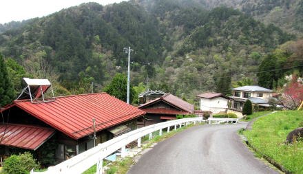 近くにいた古老に「この斜面は何か特別な場所なのですか」と訪ねると、「ああ、その高台の上には熊野十二所権現があるんだよ」と教えてくれました。 ◆古民家が残る街道脇の一角◆