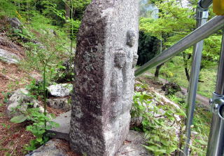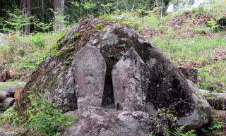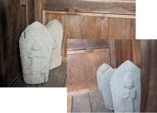 ![]() ▲地元の人たちだけが利用する林道脇の急斜面に観音堂がある ![]() ▲祭礼には村人が集まる場となっている ![]() ▲朽ちた堂舎の跡に建てられた「あずまや」。 その脇に急斜面を直登する旧参道があった。 ![]() ▲端正に補修された観音堂。流造りになっている。 ![]() ▲大きな石が数多く露出している不思議な斜面 ![]() ▲急斜面の岩棚にあるお堂 ![]() ▲自然石に「馬頭観世音」という文字が刻まれた石仏 ![]() ▲浮き彫りの観音が刻まれた石仏は比較的に新しい 信州の各地の集落には、1970年頃まで、各住戸ごとに街道や村の辻などに石仏を奉納する風習がありました。倉本の住民の先祖のなかには、自ら修験僧(山伏)として、石仏を奉納してきた人びとがいたのではないでしょうか。 |