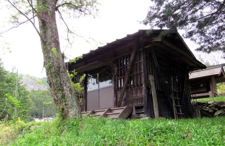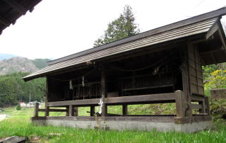 ◆残っているのは蓋殿だけ◆ 街道に沿った家並みの軸心にある熊野権現社なのですが、いま存在するのは蓋殿だけで、神の依代となる本殿や祠はひとつもありません。盗難や劣化を怖れてどこか別のところ(たとえば地区の公民館)に保管してあるのでしょうか。 ◆倉本熊野社の来歴を想像する◆