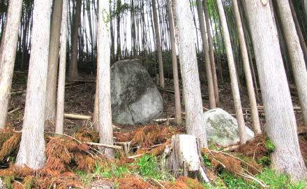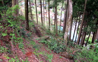 境内がある尾根の南側の縁は杉林になっていて山頂まで続いています。熊野権現からその縁を辿ると道のりで500メートルくらいの山腹に馬頭観音堂があります。往古の修験者たちは、稜線の南側を辿ったのでしょうか。 |