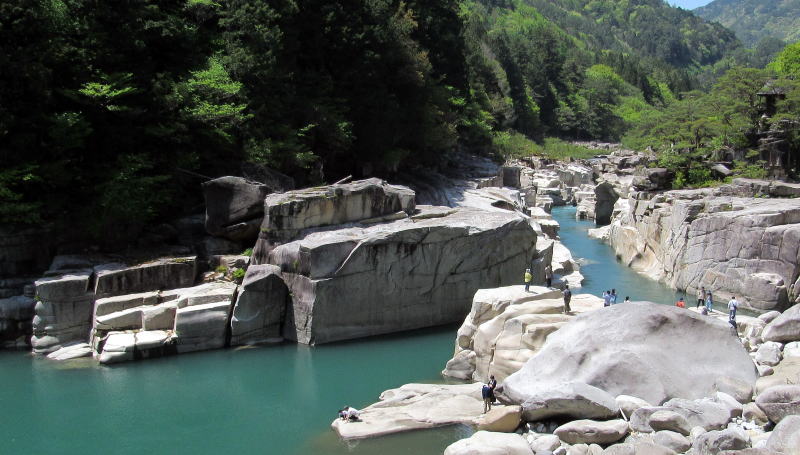 寝覚ノ床のような地形はできません。丸みを帯びた花崗岩質の石が並び積み重なる河床となります。