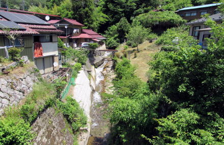 ![]() ▲見帰の中山道跡は旧国道19号だった。寝覚方面を振り返る。 ![]() ▲国道19号上松バイパスを跨ぐ立体交差の陸橋 ![]() ▲尾根裾を右にカーヴしてから中沢に向かう中山道遺構 ![]() ▲狭く深い谷を刻んで滝のように流れ下る中沢 ![]() ▲北側から古い中沢橋を眺める ![]() ▲橋を渡って北に曲がって進むと、材木役所跡と諏訪社にいたる ![]() ▲上松小学校校庭南西の辻にある庚申塔。背後に阿弥陀堂があった。 旧中山道は、庚申塔の壇の右下(西脇)を通っていたという。 ![]() ▲右端の石垣の辺りを中山道が通っていた ![]() ▲校庭の西脇を南北に通る道路(現在の中山道遊歩コース) ![]() ▲旧中山道の寺坂はこのような舗装道路になっている ![]() ▲寺坂の急斜面の住宅地を通る階段小径 ![]() ▲段丘崖下にいくつも石塔や石仏が並んでいる 段丘の上には明治時代まで観音堂があったそうだ。 寺坂と呼ばれる斜面には往古、妙見山久保寺という寺院があったことから、寺坂という地名になったそうだ。久保寺にはいくつも塔頭支院があって、斜面に並んでいたようだ。観音堂もこの寺に属していたらしい。 |