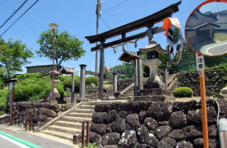 ◆諏訪社の社叢と材木役所跡◆ 旧中沢橋を越えると、中山道跡道路脇の標識にしたがって北に曲がって丘をのぼっていたようです。道路は東から西に張り出した尾根丘を横切って上松宿に向かうことになります。