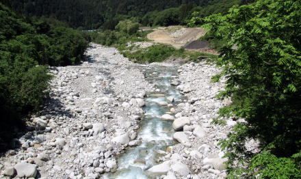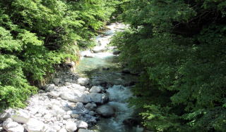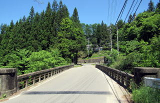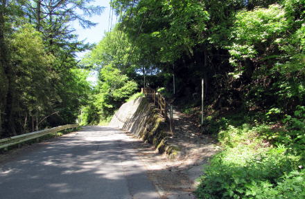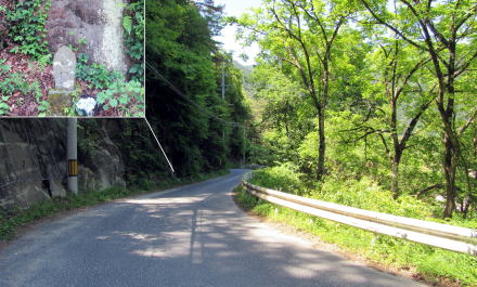 ◆滑川橋を渡る◆ 小野原を往く旧中山道は、昭和後期まで国道19号でした。江戸時代には道幅が最も広いところでも1間(1.8m)くらいでしたが、現在の舗装道路はその2~3倍に拡幅されています。山側の斜面を切り崩したので、現在の擁壁は切り立った崖になっているところが多いのです。