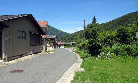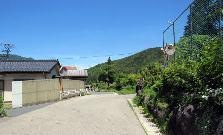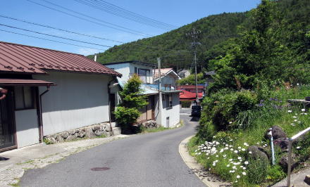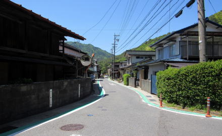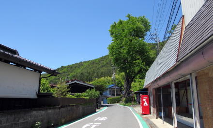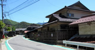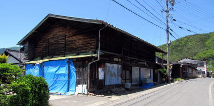 旧国道といっても幅3メートルあるかないかです。寝覚の集落は古い時代の町割り(家々の敷地割り)を残していて、集落の中心部にはいくつか古民家も残されています。