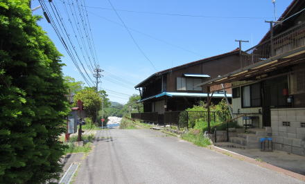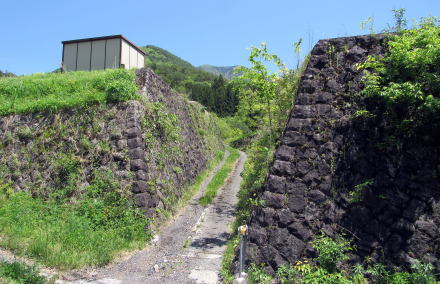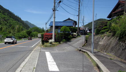 ![]() ▲達道橋梁の下を流れる荻原沢の急流 ![]() ▲国道橋梁の下から木曾川に流れ込む荻原沢 ![]() ▲JR中央線の東側の山裾から荻原の家並みを眺める ![]() ▲国道19号から東に分岐して荻原集落に入っていく旧中山道 ![]() ▲旧街道東脇に並ぶ二十三夜塔と名号塔(念仏塔) ここに名号塔があるのは、東野の阿弥陀堂への参道ともなっている木曽古道への入り口だからかもしれない。 ![]() ▲旧中山道は拡幅・舗装され、昭和後期まで国道19号だった ![]() ▲右側の古民家は、道路の拡幅に応じて屋根の形を変えた ![]() ▲この部分は道路の起伏を均して舗装した そのため、家屋の基盤が路面よりも低くなった ![]() ▲本棟出梁造りの町家構造がよくわかる古民家 ![]() ▲幕末までの旧街道の路面は、家の基盤と同じ高さだった ![]() ▲右手道路脇の石垣の上に常夜灯が立つ。かつてはここが 鹿嶋社・香取社 への参道の起点だったという ![]() ▲旧街道はこの先で尾根の背高台から木曾川河岸へ降りていく ![]() ▲この先で国道19号にふたたび合流する。 ![]() ▲段丘崖上を通る国道の路面は河床よりも10m高い位置にある ![]() ▲国道との合流地点の手前(矢印の位置)に一里塚跡の碑がある ![]() ▲国道との合流点の南傍らの段丘崖に施された石垣。近世城郭の ように見える石垣の上は斜面の耕作地になっていて棚田もある。 |