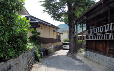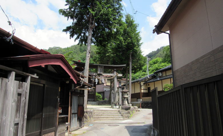 中山道から神社に向かう小路は参道だったようで、どことなく懐かしい趣きが残っていて、無住になった古民家や古い造りを残した住宅がいくつか見られます。