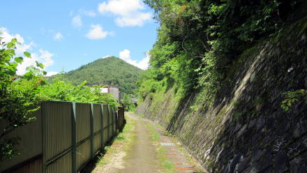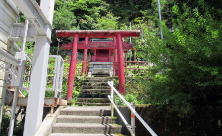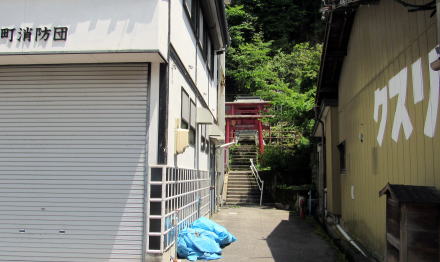 ![]() ▲上松町消防団の建物の裏手に階段参道と赤い鳥居が見える ![]() ▲街裏に迫る簗裾斜面をのぼる参道階段 ![]() ▲山裾の裏道から稲荷社の社殿と鳥居を眺める ![]() ▲山裾を仲町方面に向かう遊歩道。正面奥は愛宕山。 ![]() ▲家並みの裏手の山裾を南(寺坂下)に向かう遊歩道 |