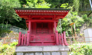 案の定、広小路の橋の山裾にこの稲荷社を見つけました。一間流造の端正な社殿です。さらに、一里塚跡の奥の納屋裾に津島社を見つけました。
