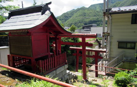 ![]() 天狗山の裾を南北に通る宿場の裏道の脇に稲荷社が祀られている |