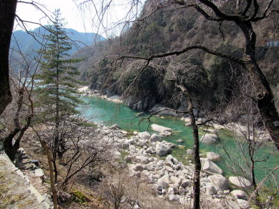 深い峡谷を削り出した木曾川(南木曽町)▲