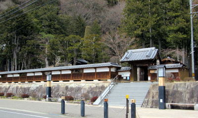 ▲山村代官屋敷跡(平山城の結構)。門と土塀は近年築かれたもの。