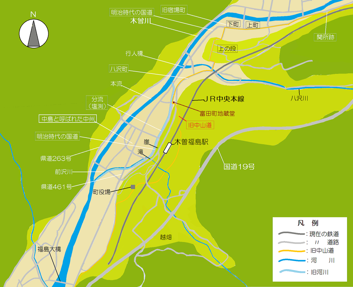 木曽福島での旧中山道の道筋