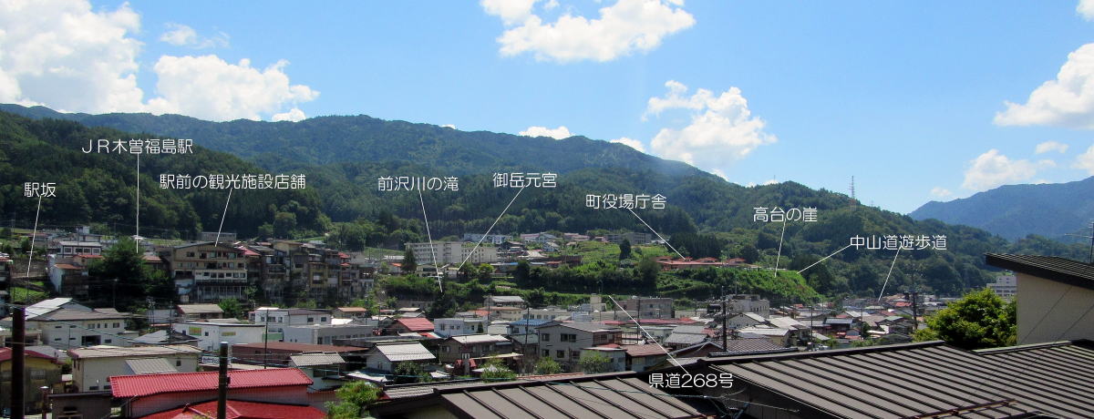 | 中山道の木曾路を歩いて景観や歴史・文化を知り楽しもうとする人びとが増えましたが、現在では往時の面影や痕跡の多くが失われています。旧中山道の「本当の姿」を探索するのは困難になっています。 このサイトは、江戸時代の中山道をめぐる地形や景観について、実際の探索や史資料の調査によって、想像しながら復元しようと試みています。 木曾福島は、明治以降、とくに昭和期に木曽郡の産業や行政の中心地として発展しました。その分、市街地や道路、工場用地に開発のために、河川や河岸段丘などの地形が大きく改造されてきました。 ここでは、旧中山道が通っていた、JR駅や町役場がある高台丘の現在の姿を撮影した写真をもとに、昔日の姿を探索・想像する手がかりを提示します。 |