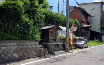 富田町の地蔵堂 往古、背後は崖ではなくもっと傾斜の緩い斜面だった。