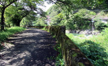 この国道建設工事では、駅坂の下から塩渕交差点まで続く高台段丘の縁を削って、分流の畔に道路用地を確保したため、段丘崖はさらに急斜面になりました。それ以前は、段丘崖は今よりも傾斜が緩い傾斜だったようです。⇒関連記事
