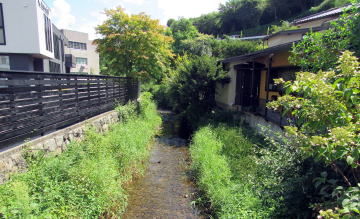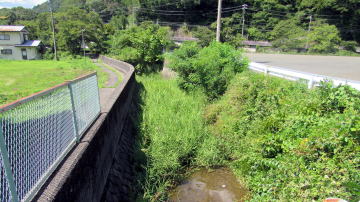 塩渕交差点近くを南西向きに流れる前沢川▲