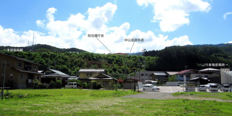 江戸時代の中山道は、高台の鳥居から中平の谷間に降りてきて、さらに福島宿の西に位置する木曾川の畔、塩渕にいたりました。 |