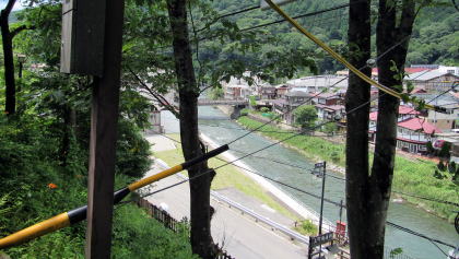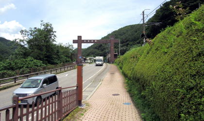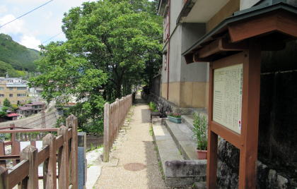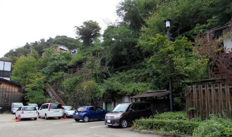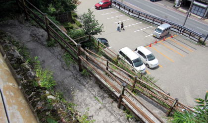 上町の駐車場から関所跡がある高台には、駐車場の南側の崖につくられているつづれ折れの道をのぼっていくことになります。