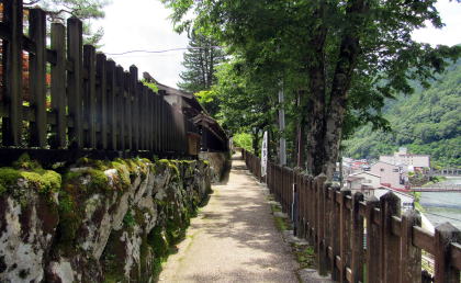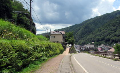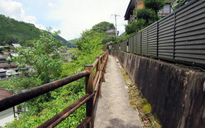 関所跡の北脇は崖縁にこのように狭い道が通っている