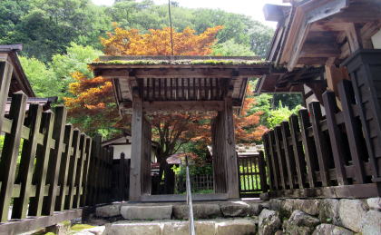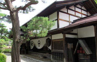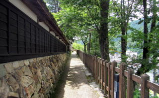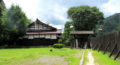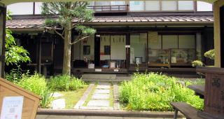 高瀬家資料館入り口の長屋門から邸内を眺める