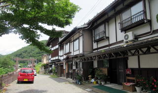往時はこんな断崖ではなく、「菓子蔵喜しろう」の店舗の辺りから高瀬家資料館辺りまで幅1間ほどの坂道の街道が続いていたと推定されます。そういう坂道沿いに上町の家並みがあったはずです。